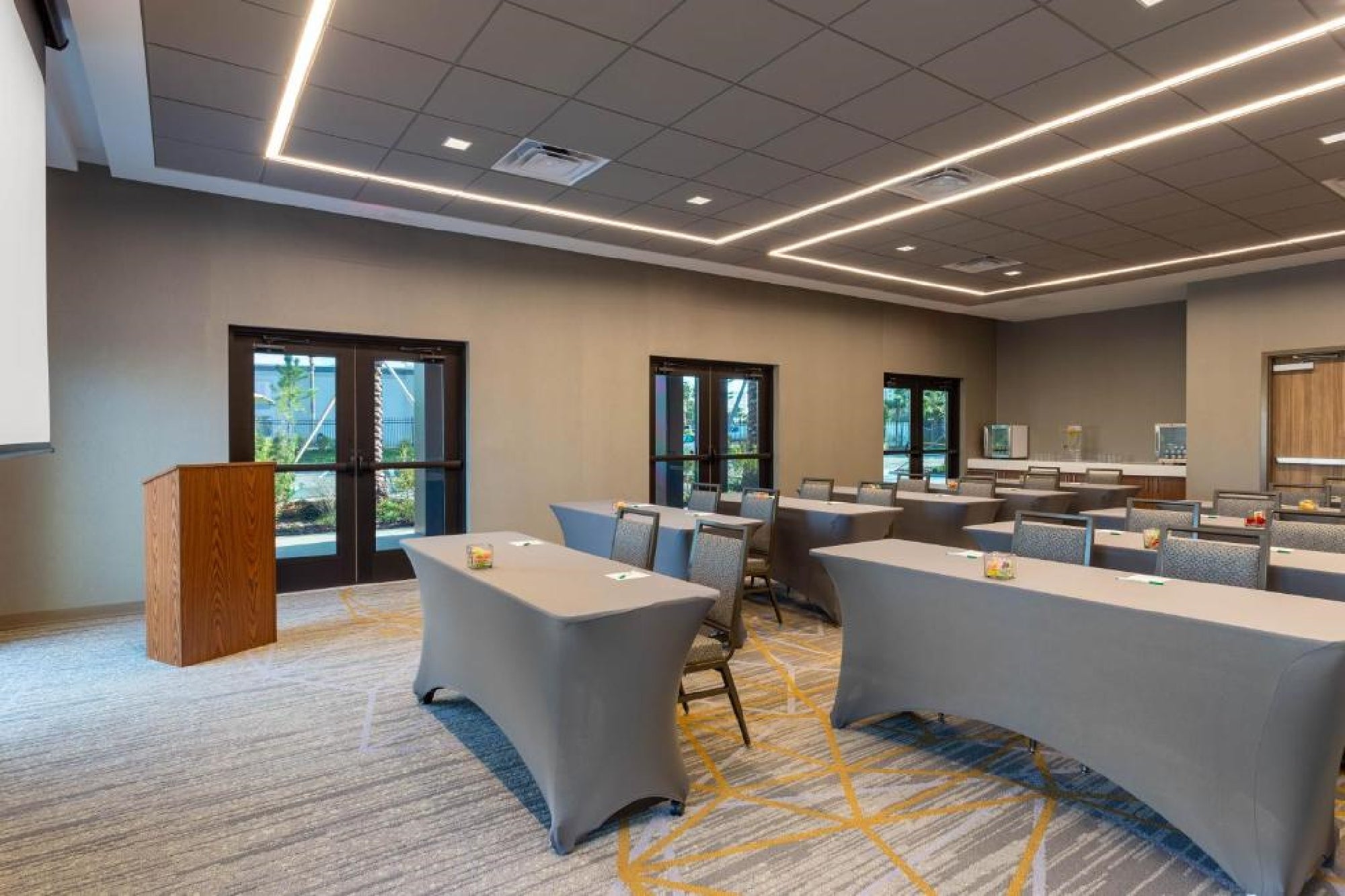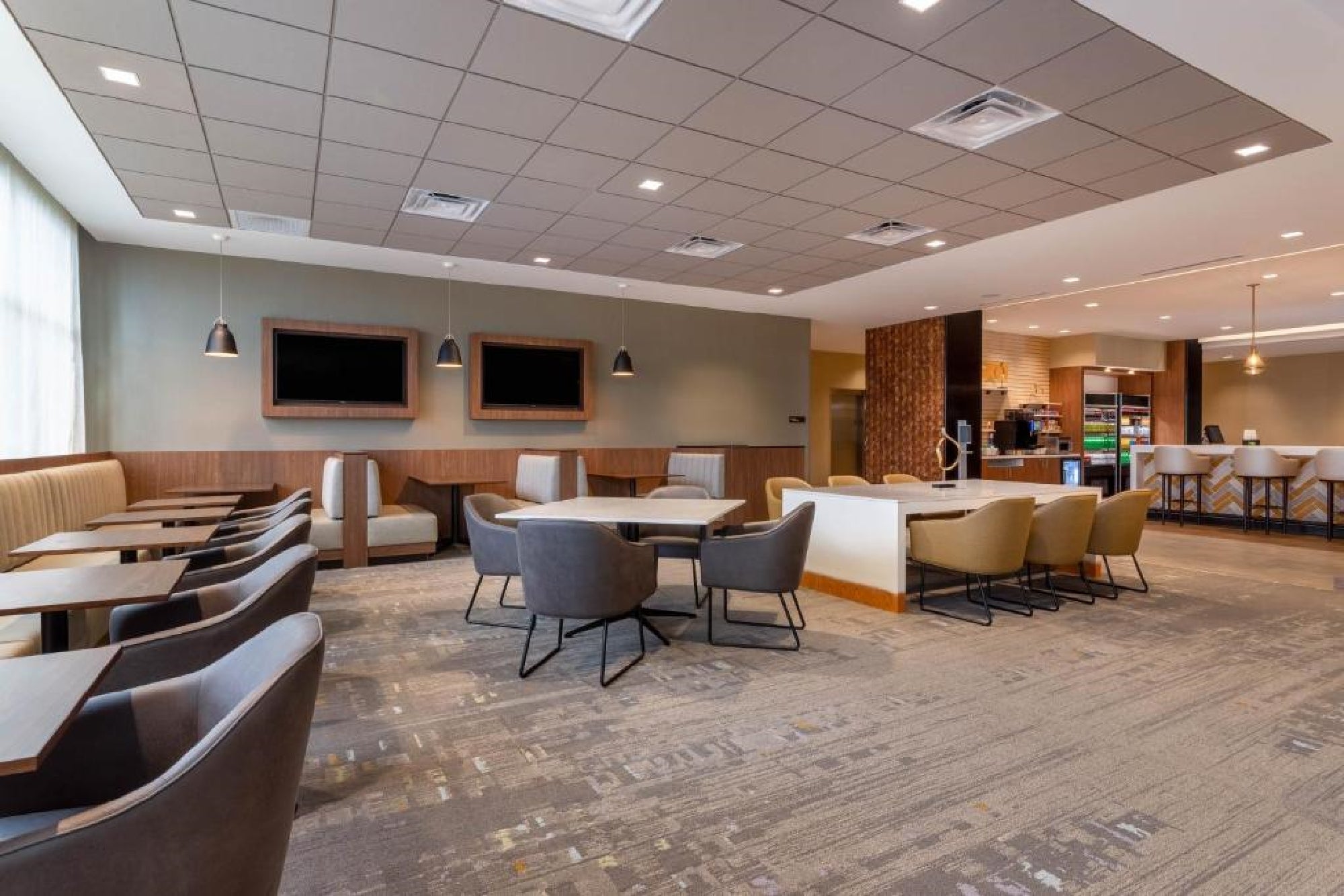 Yes, there are meeting rooms and event space available for corporate or social gatherings.